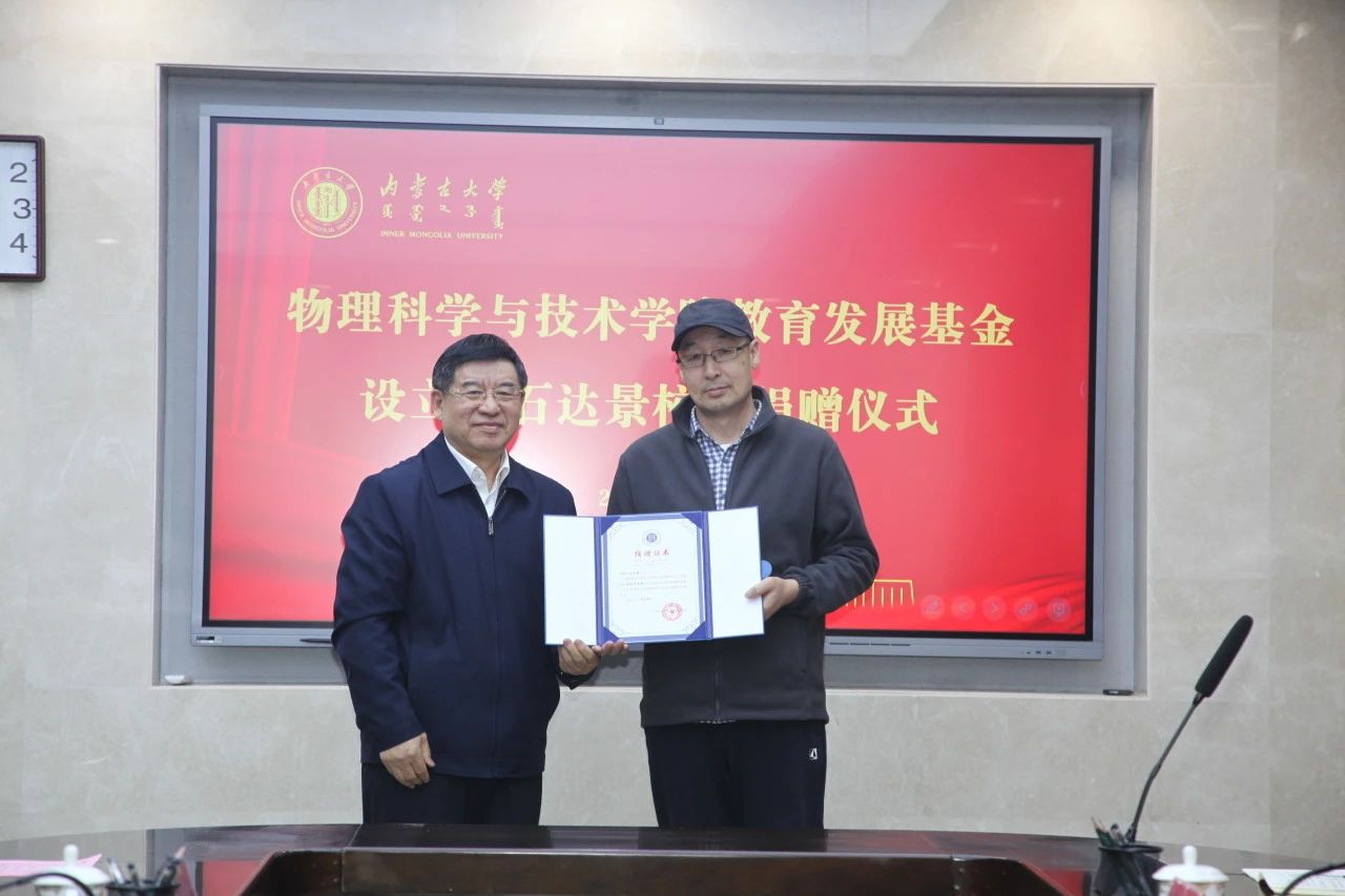 内蒙古大学物理系85级校友、捐赠人代表郭俊平,内蒙古大学教育发展基金会理事长、内蒙古大学原党委书记朱炳文,综合赛事平台教授、内蒙古大学原副校长班士良,校友工作与国内合作办公室主任郎磊,校友会副秘书长刘文生,综合赛事平台执行院长赵国军,特聘院长李新奇,副院长刘俊杰、朱成军及学院部分教师和学生代表参加了捐赠仪式。捐赠仪式由综合赛事平台党委书记邓秀全主持。