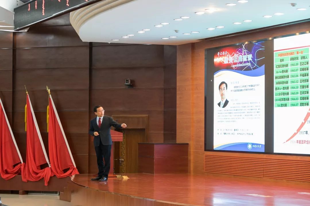 2019年4月18日上午9时30分,首场学术报告以《激光照亮未来——2018年诺贝尔物理学奖评介》为题,立足国际视野,聚焦学术前沿,全校相关专业的导师和研究生聆听了报告。