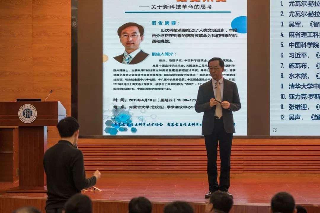 2019年4月19日下午,举办了第四场学术报告《制度激励——建设现代大学治理体系》。本次讲座是受自治区党委宣传部、自治区高校工委、自治区团委的共同邀请,张杰院士为自治区教育界同仁和我校领导干部举办了“建设亮丽内蒙古 共圆伟大中国梦”全区高校百场形势政策报告会。