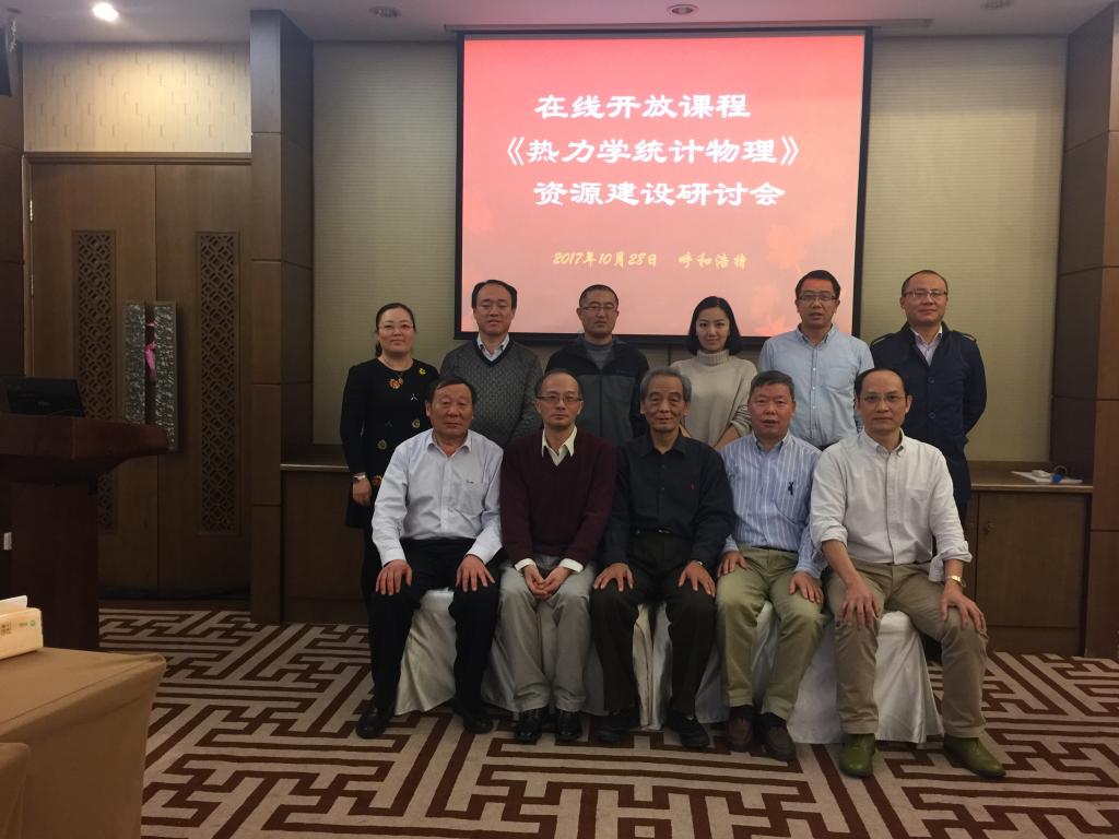 为推动高校在线开放课程群建设,促进优质教学资源在教学中的广泛应用,推动教学模式改革,进一步提高教学质量,2017年10月28日至29日于呼和浩特举行了“在线开放课程《热力学与统计物理》资源建设研讨会”。参会人员包括厦门大学陈金灿教授,北京师范大学包景东教授,湖南大学刘全慧教授,兰州大学谭磊教授,内蒙古大学梁希俠教授,班士良教授,宫箭教授,赵国军教授,崔鑫副教授,宋铁磊博士,高等教育出版社理工出版事业部忻蓓编辑。