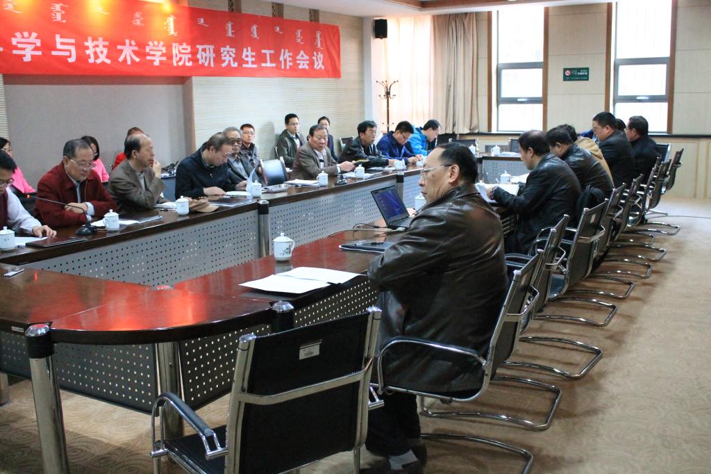 2016年11月19日上午,综合赛事平台研究生工作会议在学术会议中心2号会议室召开。副校长班士良教授、研究生院常务副院长高光来教授、生命科学学院院长莫日根教授、理工学部主任委员李前忠教授和国家级教学名师奖获得者梁希侠教授,以及学院全体研究生指导教师参加此次会议。