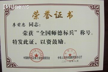 李前忠教授获得全国师德标兵称号 李前忠教授获得全国师德标兵称号
