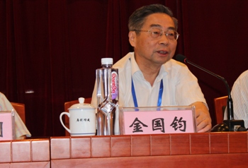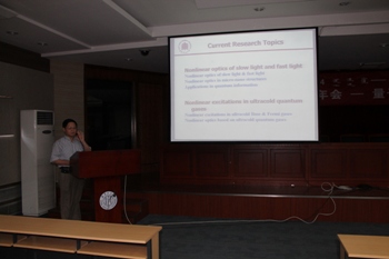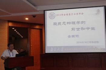 全国高等学校量子力学研究会副理事长、南京大学金国均教授讲话,并做了题为《凝聚态物理学的前世和今生》的专题报告。