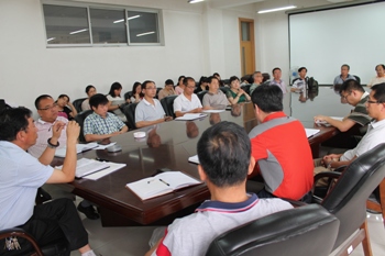 2014年6月19日下午4:30,综合赛事平台在综合教学楼0617室召开了全院教职工大会布置期末工作。综合赛事平台党总支书记施道明、院长李前忠教授、副院长赵国军教授、副院长宫箭教授、副院长、团总支书记谢峻鹏和全院教职工参加了会议。