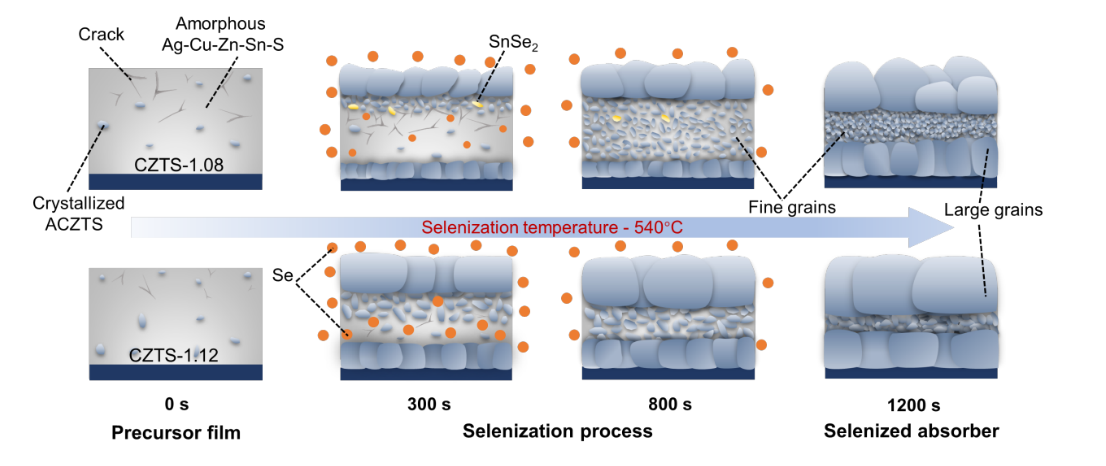 这项工作从根本上揭示了溶液处理CZTSSe中缺陷竞争动力学对阳离子化学计量的极度敏感性,揭示了缺陷竞争动力学平衡物化机制,为硫系化合物光伏材料的缺陷工程提供了关键见解。