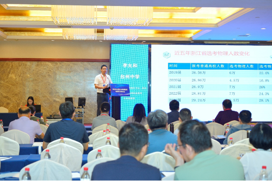 教育部高等学校大学物理课程教学指导委员会副主任委员、大中物理教育衔接工作委员会主任委员、浙江工业大学施建青教授致辞