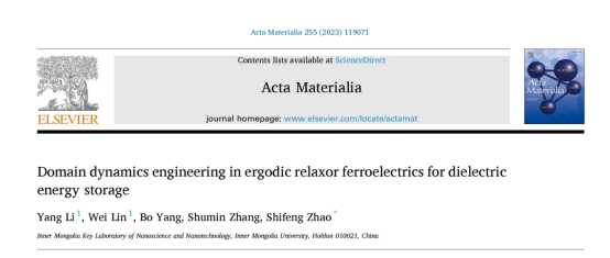 近日,我院赵世峰教授指导研究生在遍历弛豫铁电畴动力学调控研究领域取得最新进展,相关成果以“Domain dynamics engineering in ergodic relaxor ferroelectrics for dielectric energy storage” 为题发表在金属材料领域顶级期刊Acta Materialia(《材料学报》)上,该刊创刊于1996年,目标是寻求具有高影响潜力或实质性推进该领域的论文,是材料领域,特别是从事金属材料研究人员高度认可的顶级学术期刊,在业界有极高的声誉。该期刊属于SCI一区top期刊(论文链接:https://doi.org/10.1016/j.actamat.2023.119071)。