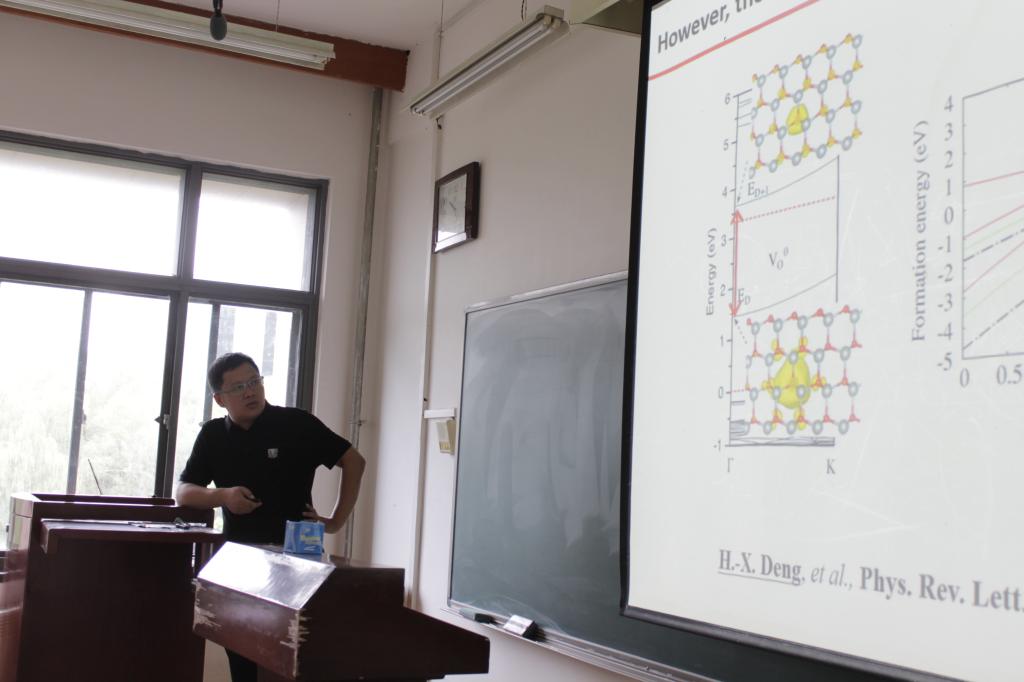 2020年8月15日上午10:00-11:00,应综合赛事平台邀请,中国科学院半导体研究所邓惠雄研究员在卓越楼0216作了题为“维度无关的半导体缺陷计算理论”的学术报告。主持人为物理学院屈媛副教授。参加人有学院部分教师、研究生和本科生50多人。