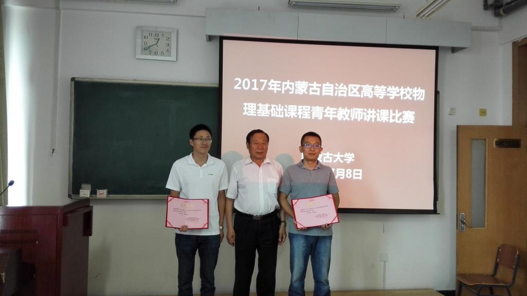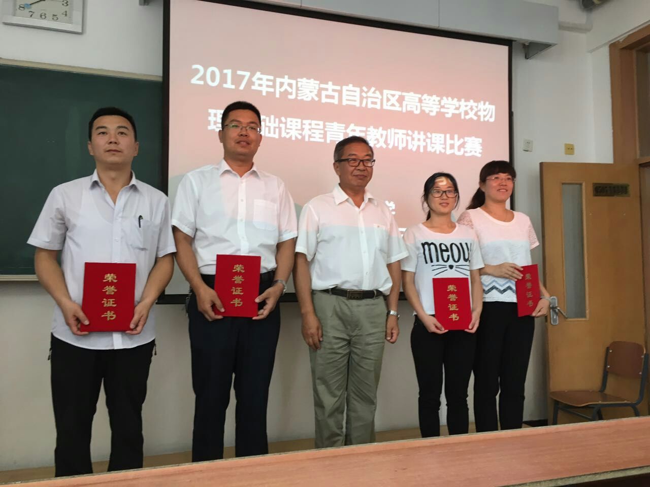 本次比赛由来自于内蒙古大学、内蒙古工业大学、内蒙古农业大学、内蒙古科技大学、内蒙古民族大学、包头师范学院和赤峰学院等7所区内高校的11名教师参加。教育部高等学校物理学类专业教学指导委员会副主任委员、内蒙古自治区物理学会理事长班士良教授和来自其他高校的5位老师组成评委组,经过比赛,最终确定一等奖2人,二等奖4人,三等奖5人。同时推荐内蒙古工业大学王利福老师和内蒙古大学王舒东老师参加2017年华北地区高等学校物理实验课程青年教师讲课比赛暨“第三届全国高等学校物理基础课程青年教师讲课比赛选拔赛”。