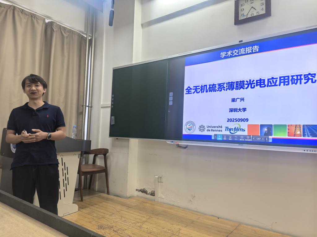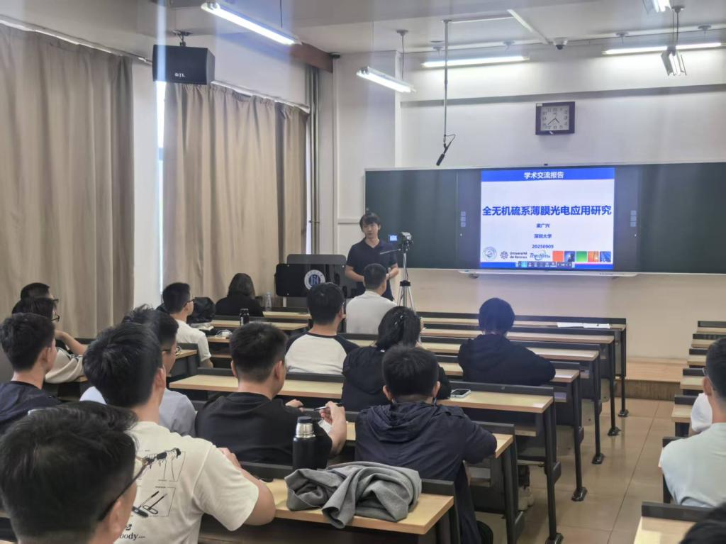 2025年9月9日,深圳大学梁广兴教授应综合赛事平台邀请在卓越楼0207室做了题为“全无机硫系薄膜光电应用研究进展”的学术报告。综合赛事平台副院长朱成军教授主持报告。内蒙古大学物理学院教师、博士后、博士、硕士研究生等参加了报告会并进行交流。