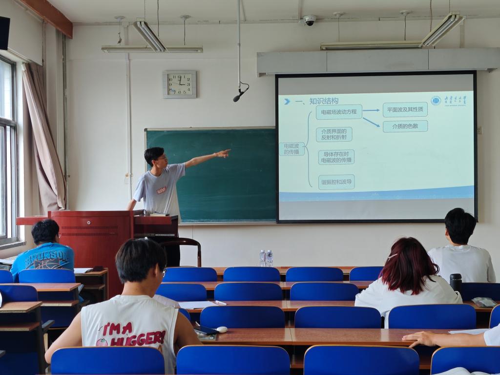 张展围绕电磁波的传播和辐射、狭义相对论等章节展开讲解,精炼归纳了课程重点知识以及历年考题,并结合习题,深入讲解题思路、解题技巧和易错点。讲解结束后,针对同学们复习中遇到的疑难问题,现场进行了耐心细致的解答。