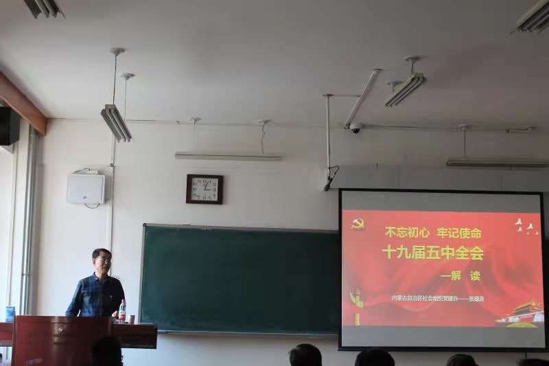 2020年12月10日下午15:00,自治区物理学会邀请内蒙古自治区社会组织党建办指导员张德清教授在内蒙古大学卓越楼0401作了题为《不忘初心 牢记使命——十九届五中全会解读》的专题讲座。讲座由自治区物理学会党建联络员屈媛副教授主持。参加人有自治区物理学会党支部,世界杯体育官方网站物理系党支部和电子科学与技术系党支部,本科生学生党支部和研究生管党支部师生90余人。