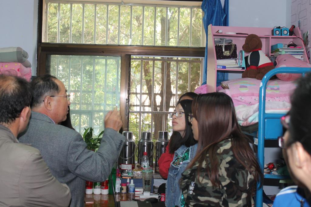 为国庆假期学生离校不留隐患,2017年9月30日下午3:00,综合赛事平台党总支书记李宏教授、团总支副书记(学生工作办公室副主任)李妮、及各年级班主任部分学生干部组成检查组,深入学生宿舍,对学生宿舍安全隐患和卫生情况等进行了全面检查。