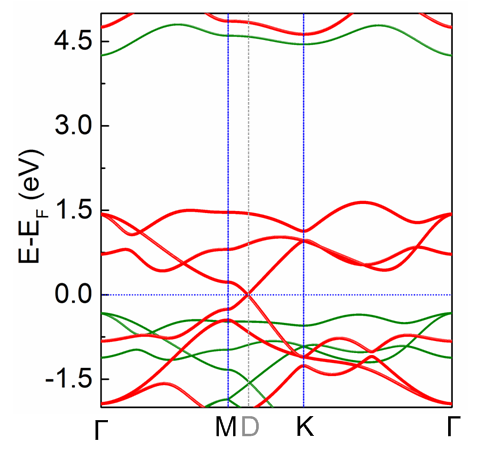 费米能级附近的线性狄拉克态让石墨烯拥有了诸多的奇异性质,并使它享誉了“新材料之王”的美称。然而,本征石墨烯的这种Dirac态是自旋简并的,难以在自旋电子学领域一展拳脚。 面对这一挑战,2008年澳大利亚卧龙岗大学王晓临教授提出了狄拉克自旋无带隙半导体(狄拉克半金属)的新概念 [Phys. Rev. Lett. 2008, 100, 156404]——在其电子能带结构中,一个自旋通道有能隙表现为半导体,而另一个自旋通道无带隙具有类似石墨烯的线性狄拉克态。 由于这种单自旋狄拉克态在超快、超低能耗自旋电子学器件中具有巨大的应用前景,因此在实际材料中寻找这种奇异的电子态成为凝聚态物理研究中的热点。