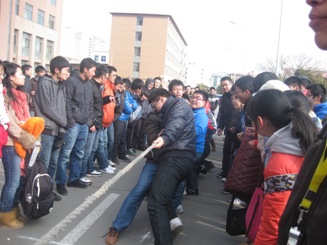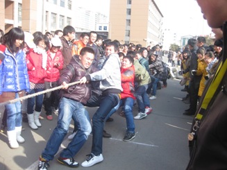 为丰富同学们的课余生活,加强学生之间的沟通和联系,构建和谐校园,综合赛事平台学生会于2012年11月28日中午12:30,在综合教学楼前举办了综合赛事平台2012年冬季拔河比赛。