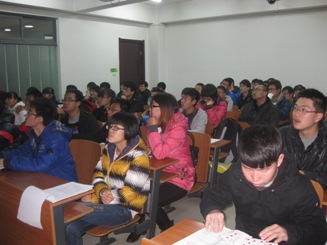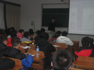 | 2012年CUPT内蒙古大学参赛选手、2009级数理学基地班郝艳飞同学为选手们介绍CUPT的相关事宜 |