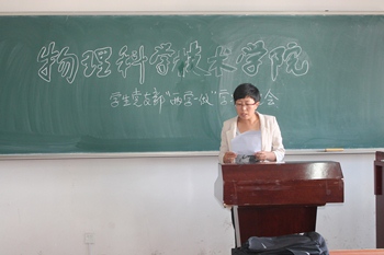 物理学院党总支书记李宏教授、前党总支书记施道明、团总支副书记(学生工作办公室副主任)李妮参加会议并作指导发言。