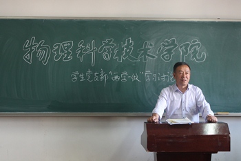 李宏书记给同学们生动地讲解了如何学习党章党史,强调在新形势下大学生党员不仅要严格要求自己、更要起到模范带头作用,做有志青年,积极为党、为国家、为人民做出自己的贡献。施道明老师则教导同学们:要及时地规划总结,从点滴做起、逐渐积累、不断完善、提升自我,同时还用鲜活的例子告诉同学们该如何更好地走出校门、踏入社会、迎接全新的人生。