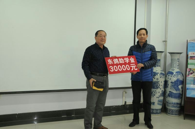 冯福林处长为获得一等“东鸽助学金”的6位同学颁发证书,海光副处长为获得二等“东鸽助学金”的12位同学颁发证书。