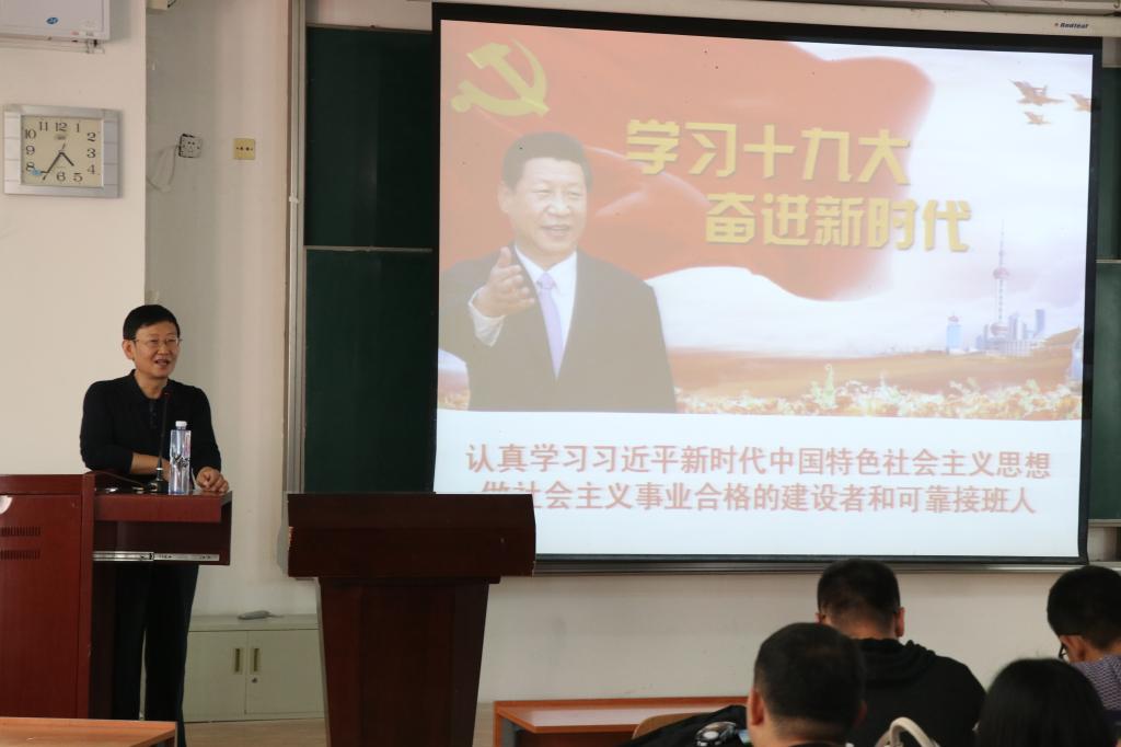 梁书记主要围绕党的十九大的主题、中国特色社会主义进入了新时代、新时代中国共产党的历史使命、实现第一个百年奋斗目标和向第二个百年奋斗目标进军四个方面进行了讲授。讲到十九大的主题,梁书记用“八个明确”和“十四个坚持”全面概述了习近平新时代中国特色社会主义思想的理论体系;讲到中国特色社会主义进入了新时代,梁书记从中国和世界的角度分别阐述了其重大意义;讲到新时代中国共产党的历史使命,梁书记从必须坚持伟大斗争,伟大工程,伟大事业,伟大梦想从而最终实现中华民族伟大复兴的中国梦指出了中国共产党的历史使命;讲到实现第一个百年奋斗目标和向第二个百年奋斗目标进军,梁书记从“三步走”战略目标和“两个一百年”奋斗目标讲到了“五位一体”总体布局和“四个全面”战略布局,让同学们深刻认识到了中国共产党在推进国家富强、民族振兴、人民幸福,实现中华民族伟大复兴的中国梦这件事上的不懈坚持与努力。