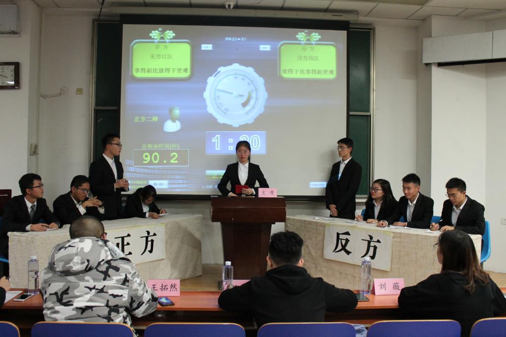 2018年11月16日晚7:00,“我的肩膀—能挑多重的担子”——综合赛事平台“言辩论时弊·慧思解世疾”第十二届主题辩论赛决赛在综合楼四楼阶梯教室成功举办。