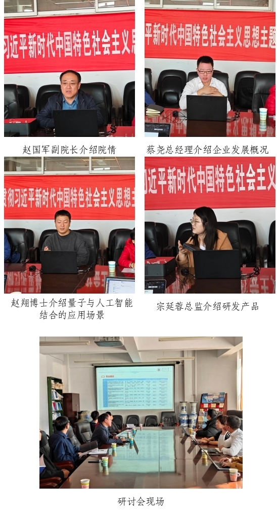 会上,赵国军副院长围绕学院的历史沿革、师资队伍、教学科研和人才培养等情况进行了介绍。上海图灵量子科技有限公司光连接事业部总经理蔡尧、量子人工智能算法专家赵翔博士和教育科研仪器事业部产品总监宗延蓉分别从企业发展概况、业务范围、量子与人工智能结合的应用场景,以及研发产品等方面进行了介绍。随后,双方就人才培养和产品应用等方面的具体合作事项进行交流研讨,以实现共创多赢的美好愿景。