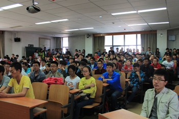 2015年4月28日中午13:40,综合赛事平台团总支在综合教学楼二楼阶梯教室召开了运动会动员大会。综合赛事平台学生会全体成员、2013和2014级全体同学及全体参赛运动员参加了动员大会。