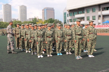 训练场地上,一个个整齐的绿色方阵以饱满的热情踏着整齐的步伐,喊着嘹亮的口号。教官们不厌其烦地示范、指导,同学们认真的做动作,整个训练场地中是一片如火如荼的训练氛围。尽管偶尔还会转错方向,队伍也未能够达到整齐划一的完美,但同学们毫无懈怠。时间分分秒秒地过去,渐渐的,烈日高照,而身边灰飞尘扬,浑身酸痛、挥汗如雨的同学们似乎越战越勇,在一次次不断重复的单调训练中诠释着坚韧不拔。站军姿,纹丝不动;练队列,规范敏捷。经过几天的训练,整个队列的动作在教官口令的引导下逐渐统一、整齐起来。我们看到了同学们坚毅顽强的一面,男生的稳健有力,女生的巾帼气魄,俨然已有了几分军人的风采。