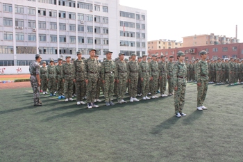 早晨6:30,身着绿色迷彩的同学们已沐浴着柔和的晨光开始了紧张的军事化训练。“稍息,立正,报数,齐步走,正步走,跑步行进,向左看齐”——军训的乐章演奏着军人的“钢铁长城”。