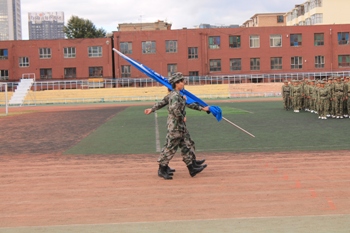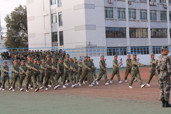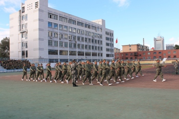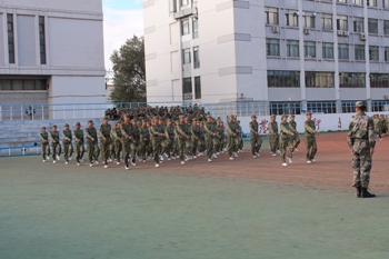 我院学生进行阅兵式分列式汇报表演  我院学生进行阅兵式分列式汇报表演
