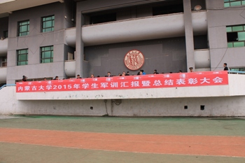 2015年9月11日上午9:00,内蒙古大学2015级学生军训汇报暨总结表彰大会在学校运动场隆重举行。2015级全体受训学生圆满完成军事技能训练任务,以饱满的精神面貌接受了领导的检阅。