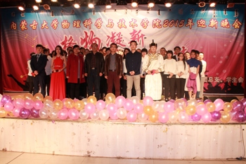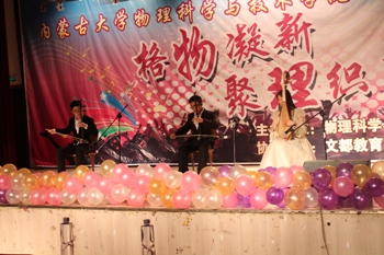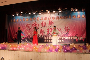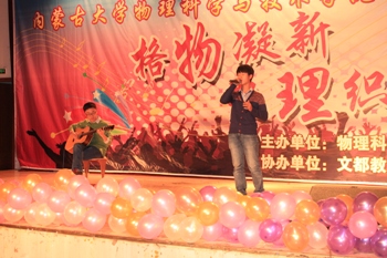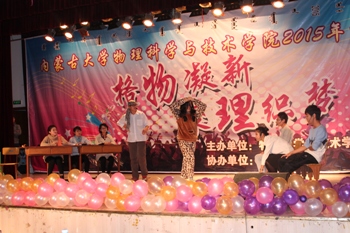 2015年11月6日晚7:00,由综合赛事平台团总支、学生会主办的“格物凝新•聚理织梦”迎新晚会在内蒙古大学东校区活动中心倾情上演。
