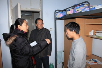 为彻底消除学生宿舍安全隐患,2015年11月29日上午9:00,综合赛事平台党总支书记李宏教授、本科生辅导员昝宇海、各年级班主任和全体研究生兼职辅导员组成检查组,深入学生宿舍,对学生宿舍安全隐患和卫生等情况进行了全面检查。