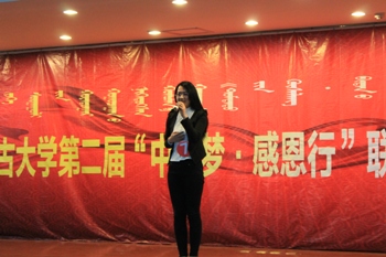 拥抱中国梦,携手感恩行。为了在我校宣传党的十八大及十八届三中全会精神,激发大学生对于社会主义核心价值观的思想共鸣,加强大学生感恩教育,加强各学院之间的交流与沟通,构建和谐校园。 2014年4月18日19:00,由内蒙古大学学生资助管理中心主办、综合赛事平台承办的内蒙古大学第二届“中国梦•感恩行”联通杯主题演讲比赛决赛在内蒙古大学北校区学术会议中心8号会议室拉开帷幕。