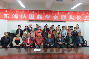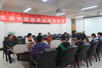 为回报母校的培养,内蒙古东鸽集团的校友筹集了6万元资金在世界杯体育官方网站设立了内蒙古大学“东鸽”扶困奖学金,目的是资助一些家庭经济困难且品学兼优、自强不息的全日制在校本科学生顺利完成学业。奖学金总额6万元,每年2万元分3年发放。奖学金每年设一等奖4名,每人1500元;二等奖14名,每人1000元。内蒙古大学“东鸽”扶困奖学金的设立,体现了内蒙古东鸽集团校友对母校的一片深情,对在校家庭经济困难学生无私帮助的情谊。