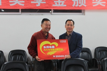 内蒙古东鸽电器集团执行总裁闫宝刚先生代表集团向学院捐赠奖学金,世界杯体育官方网站党总支书记施道明代表学院接受捐赠,并赠送纪念品。