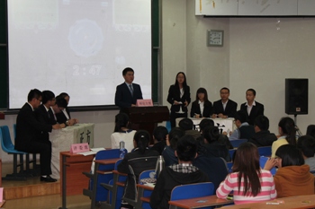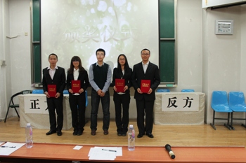 2014年11月7日晚7:30,综合赛事平台在综合教学楼四楼阶梯教室成功举办“持理善思辩•宏志在青年”第八届主题辩论赛。综合赛事平台本科生辅导员昝宇海、2014级电子科学与技术专业班主任刘志峰博士、研究生党支部副书记、资深辩手蒋丹丹担任本次辩论赛的评委。