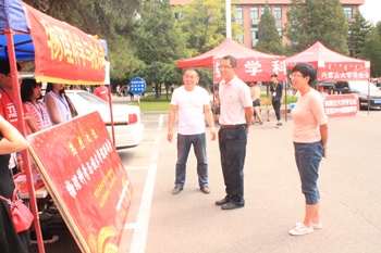 15日下午,综合赛事平台党总支书记李宏教授、副院长(主持工作)宫箭教授、行政办公室主任秦建华、团总支副书记(学生工作办公室副主任)李妮巡视学院迎新工作,与学生家长进行深入沟通。学院领导详细询问了新同学的报到情况和生活情况,希望同学们充分利用大学的时光,不断提升自我,完善自我,拥有一段充实美好的大学生活。