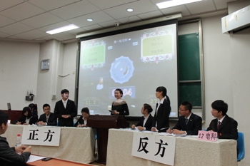 经过初赛、半决赛的激烈角逐,2011级、2012级应用物理学专业和电子科学与技术专业共四个代表队晋级本次决赛。比赛现场,选手们或幽默诙谐,或谈吐优雅,或慷慨激昂的辩论发言博得了台下观众的阵阵掌声。2012级同学们表现从容不迫,2011级代表队的表现更是可圈可点。双方在简洁、新颖的自我介绍后比赛正式开始。双方选手在开篇立论、攻辩、攻辩小结等各个环节中思路清晰、引经据典,现场气氛持续升温。随后进行的自由辩论环节中,双方选手就辩题展开更深层次的辩论。辩手们妙语连珠的辩论将比赛推向了一个又一个高潮。赛后,评委对比赛做了精彩点评,并给予双方辩手肯定和指正。