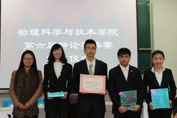 最终,2011级应用物理学专业代表队摘得本次辩论赛桂冠,2012级电子科学与技术专业代表队、2012级应用物理学专业代表队分别获得二、三等奖,2011级应用物理学专业王逸飞同学获得本次比赛“最佳辩手”荣誉称号。