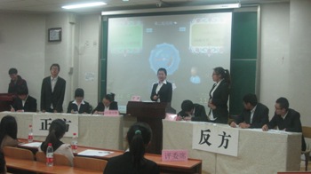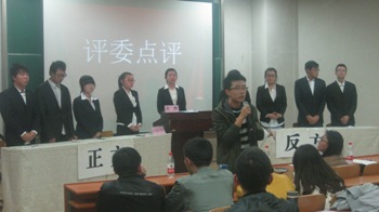 2013年11月1日晚7:00,综合赛事平台在综合教学楼二楼阶梯教室成功举办第七届辩论赛。综合赛事平台本科生辅导员谷卓、第四届团总支兼职副书记、2012级研究生、资深辩手昝宇海、电子信息工程学院学生会主席、资深辩手姜智尧担任本次辩论赛的评委。