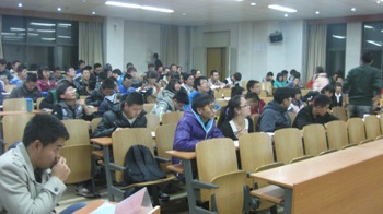 为丰富同学们的课余文化生活,使同学们能够在大学期间,拥有积极向上的学习生活态度,2013年12月2日晚7:30,综合赛事平台在综合教学楼二楼阶梯教室成功举办“梦在大学”心理健康教育座谈会。综合赛事平台2013级电子科学与技术专业班主任朱俊、本科生辅导员谷卓参加了本次座谈会。