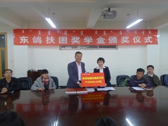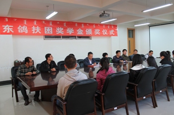 为回报母校的培养,内蒙古东鸽集团的校友筹集了6万元资金在世界杯体育官方网站设立了内蒙古大学“东鸽”扶困奖学金,目的是资助一些家庭经济困难且品学兼优、自强不息的全日制在校本科学生顺利完成学业。奖学金总额6万元,每年2万元分3年发放。奖学金每年设一等奖4名,每人1500元;二等奖14名,每人1000元。内蒙古大学“东鸽”扶困奖学金的设立,体现了内蒙古东鸽集团校友对母校的一片深情,对在校家庭经济困难学生无私帮助的情谊。