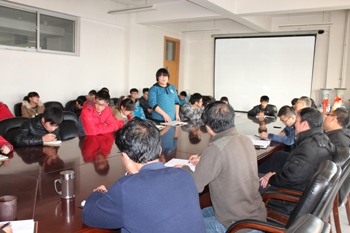 为帮助新同学解除学习、生活等方面的疑惑,引导同学们尽快适应大学生活,2013年12月11日下午2:30,综合赛事平台在综合教学楼0617室召开了2013级物理学基地专业学生座谈会。综合赛事平台党总支书记施道明、院长李前忠教授、副院长赵国军教授、副院长宫箭教授、副院长、团总支书记谢峻鹏、物理系主任刘俊杰副教授、2013级物理学基地班主任邢雁副教授、学院部分教授和2013级物理学基地专业全体新同学参加了本次座谈会。