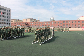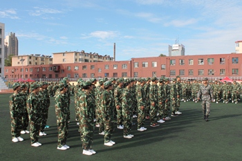 早晨6:30,身着绿色迷彩的同学们已沐浴着柔和的晨光开始了紧张的军事化训练。“稍息,立正,报数,齐步走,正步走,跑步行进,向左看齐”——军训的乐章演奏着军人的“钢铁长城”。