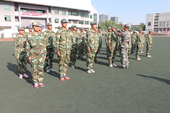 训练场地上,一个个整齐的绿色方阵以饱满的热情踏着整齐的步伐,喊着嘹亮的口号。教官们不厌其烦地示范、指导,同学们认真的做动作,整个训练场地中是一片如火如荼的训练氛围。尽管偶尔还会转错方向,队伍也未能够达到整齐划一的完美,但同学们毫无懈怠。时间分分秒秒地过去,渐渐的,烈日高照,而身边灰飞尘扬,浑身酸痛、挥汗如雨的同学们似乎越战越勇,在一次次不断重复的单调训练中诠释着坚韧不拔。站军姿,纹丝不动;练队列,规范敏捷。经过几天的训练,整个队列的动作在教官口令的引导下逐渐统一、整齐起来。我们看到了同学们坚毅顽强的一面,男生的稳健有力,女生的巾帼气魄,俨然已有了几分军人的风采。
