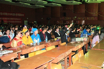 综合赛事平台党总支书记李宏教授、工会主席刘文生副教授、团总支副书记(学生工作办公室副主任)李妮、本科生辅导员昝宇海、本科生辅导员苏润梅及校内各兄弟学院学生会主席莅临晚会现场。