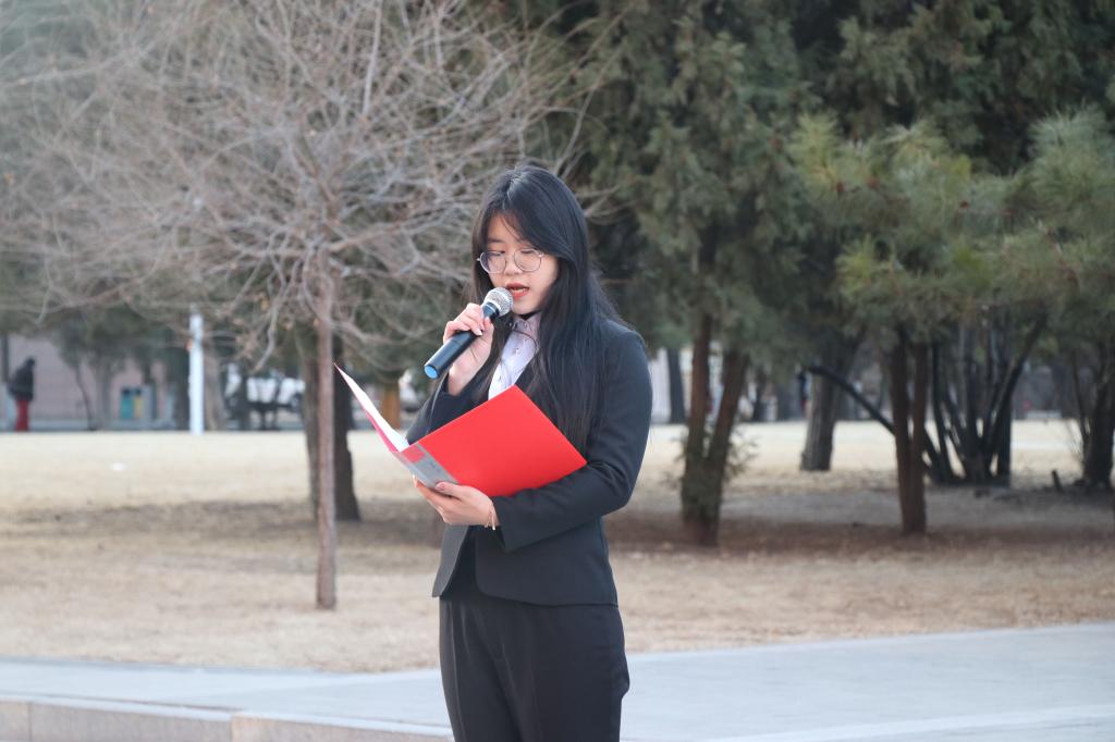 仪式第二项,2017级应用物理学专业顼文姝同学作为学生代表进行了国旗下的演讲。她讲述了中华人民共和国成立70周年来的巨大变化,并且表达了当代青年应不断提升自我文化修养、提高创新能力、完善自我的美好愿望。