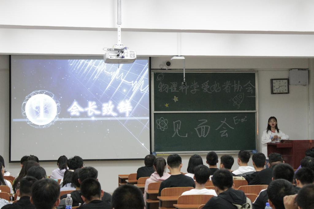 会上,物理科学爱好者协会会长朱文培首先对新成员的加入表示了热烈的欢迎,其次希望协会成员可以传承精神,培养兴趣,开展物协的新篇章。随后为大家放映了科技短视频,激发了大家对科学的热爱。接着在新成员进行自我介绍、才艺展示以及物理知识有奖竞赛、你画我猜的小游戏中,见面会气氛达到高潮。最后,有幸请到了韩开元学长为大家详细介绍了中国大学生物理学术竞赛(CUPT)的相关内容,为热爱物理的同学以后参加比赛提供了帮助。