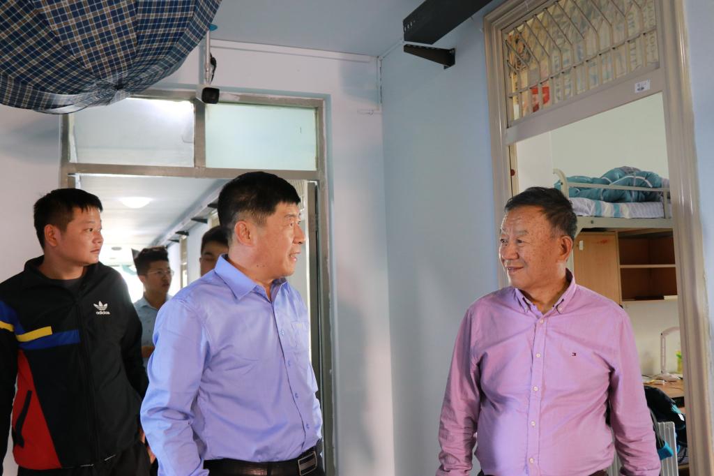 邓书记对男生宿舍进行了逐一查访,与学生们聊天,了解他们的生活与学习情况,并对宿舍安全与卫生进行指导,叮嘱大家要注意用电安全和宿舍卫生。随后,抽查了部分女生宿舍,鼓励同学们要搞好宿舍文化建设,为自己打造一个温馨惬意的宿舍环境,以便全身心投入到学习中去,同时对卫生状况良好的学生宿舍进行了表扬。